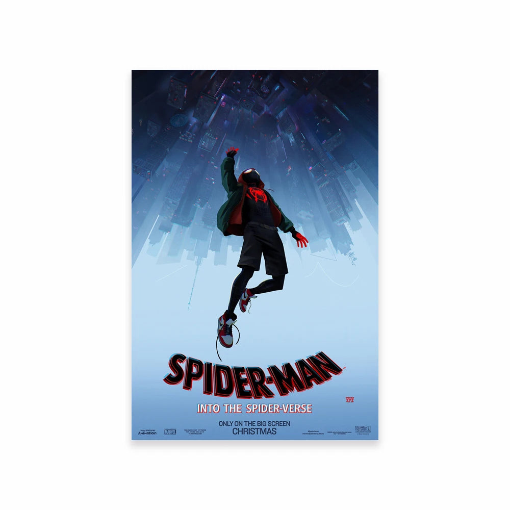 Features Spider-Man in a dynamic Across the Spider-Verse design with motivational elements